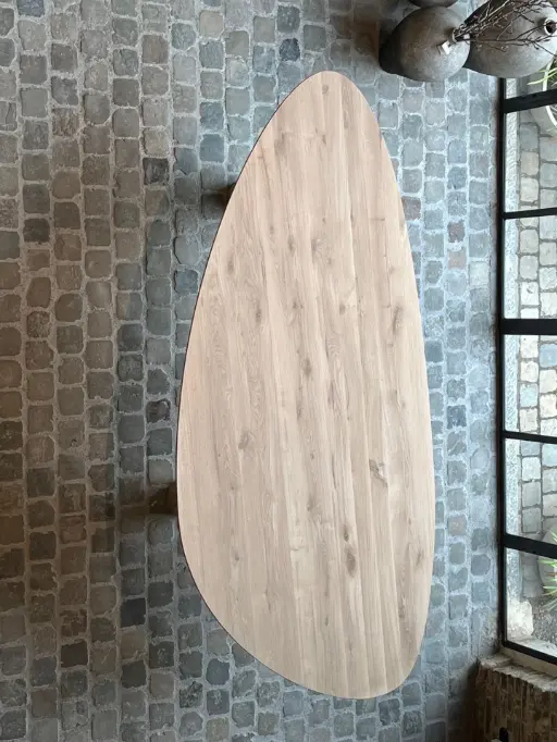 Organische vorm met eiken onderstel - tafel Dinant